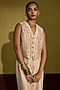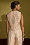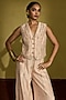 Featuring a peach gold waistcoat in tissue silk base with kiran dori and gota hand embroidery. It is paired with pants. Accentuate it with statement gold earrings and sleek metallic heels for a polished look, ideal for festive soirees, wedding festivities or cocktail celebrations.