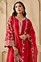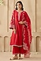 Red Silk Chanderi Floral & Thread Work A-Line Kurta Set