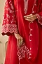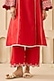 Featuring a red A-line kurta in silk chanderi base with bell sleeves, floral, cutwork and thread work. It is paired with palazzo pants and an organza scalloped dupatta. Accentuate it with dangler earrings and heels for a festive occasion or pooja ceremony.