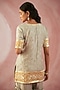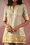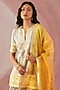 Featuring a sea green and yellow kurta in silk chanderi base with gota embroidery. It is paired with sharara pants and a yellow organza dupatta. Style it with heels and dangler earrings for a festive or an engagement ceremony.