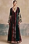 Featuring a wine and bottle green anarkali in silk velvet base with scalloped embroidery. It is paired with a dupatta. Style it with a bold lip and a potli bag for festive nights, sangeet or wedding functions.