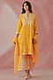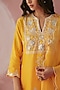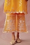 Featuring a yellow kurta in silk chanderi base with gota patti and thread work. It is paired with abstract cut organza paneled pants and a dupatta. Perfect wear for weddings or festive occasions.