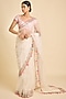Featuring an ivory saree in silk and organza base. It is paired with an embroidered blouse and an underskirt. Style this set with chunky statement earrings, heels and a sleek clutch, perfect for a sangeet ceremony or weddings.