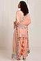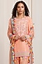 Featuring a peach kurta in silk base with embroidery. It is paired with salwar pants and an organza dupatta. Style this set with chunky statement earrings, heels and a sleek clutch, perfect for a festive ceremony.
