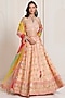 Peach Silk & Organza Mirror Embroidered Lehenga Set