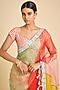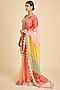 Featuring a multi-colored phulkari saree in organza base. It is paired with a silk mirror embroidered blouse. Style this set with chunky statement earrings, heels and a sleek clutch, perfect for a sangeet ceremony or weddings.