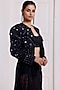 Featuring a black lehenga in net base with embroidery. It is paired with a mirror work blouse, a slip and a jacket having puff sleeves. Style this set with chunky statement earrings, heels and a sleek clutch, perfect for a sangeet ceremony or a cocktail soiree.