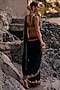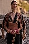 Featuring a black and coral pre-stitched saree in crepe and georgette base. It is paired with a matching V-neckline blouse, a broad belt, and a jacket. Style it with statement jewellery, wedges, and a clutch bag for festive parties or evening soirees.
