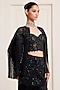 Featuring a black corset in crepe and net base with embellishments. It is paired with a skirt and an embellished fringe cape. Accentuate it with dangler earrings and heels for a festive occasion, cocktail or wedding ceremony.