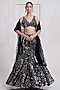Featuring a black lehenga in net base with mirror embroidery. It is paired with a mirror embroidered choli and a scalloped dupatta. Accentuate it with dangler earrings and heels for a wedding reception, cocktail or sangeet ceremony.