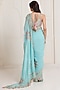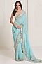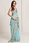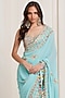 Featuring a blue saree in georgette base with motifs work. It is paired with a mirror embroidered blouse and an underskirt. Accentuate it with dangler earrings, an embellished clutch and heels for a festive occasion, wedding or engagement ceremony.