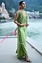 Featuring a green jumpsuit in net, pure crepe, and organza base with embroidery. It is paired with a matching waistcoat. Style it with chunky earrings, heels, and a clutch bag for festive parties or evening soirees.