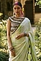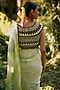 Featuring a green tie-dye pre-stitched saree in net and pure crepe base. It is paired with a black and white top having a boat neckline. Style it with statement jewellery, wedges, and a clutch bag for festive parties or evening soirees.