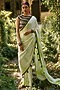 Green & White Pure Crepe Saree