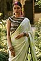 Featuring a green and white saree in pure crepe base. Style this sarees with a blouse, minimal jewelry and a sleek bun, perfect for cocktail evenings, modern weddings, or festive soirees.
