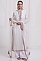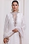 Featuring an ivory kurta in chanderi and net base with bell sleeves and embroidery. It is paired with pants and a dupatta. Accentuate it with dangler earrings and heels for a festive occasion, cultural event or wedding ceremony.