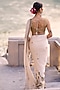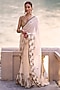 Featuring an ivory and green saree in crepe and georgette base with embroidery. It is paired with ivory gold sheathed choli and an underskirt. Style it with statement jewellery, wedges, and a clutch bag for festive parties or evening soirees.