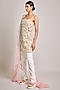 Featuring an ivory-pink kurta in georgette and net base with pearl embroidery. It is paired with straight pants and a pink ombre dupatta. Accentuate it with dangler earrings and heels for a festive occasion, cultural event, wedding or sangeet ceremony.