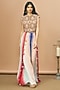 Featuring a nude crop top in net and georgette base with embroidery. It is paired with multi-colored wrap pants. Accentuate it with dangler earrings and heels for a festive occasion, reception, cocktail or sangeet ceremony.