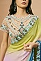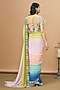Featuring a multi-colored shaded saree in net and georgette base with an embroidered border. It is paired with a blouse and a belt. Style it with statement earrings and heels for a wedding, sangeet or engagement ceremony.