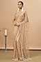 Featuring a nude saree in net base with coral embroidery. It is paired with a race-back blouse and an underkirt. Accentuate it with zircon jewellery and heels for a festive occasion, reception, wedding, engagement or sangeet ceremony.