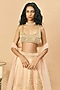 Featuring a peach panel lehenga in net base with motif and cut beads embroidery. It is paired with an embroidered blouse and a dupatta. Style it with statement earrings and heels for a wedding, sangeet or engagement ceremony.