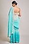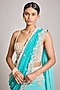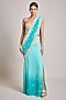 Featuring a turquoise ombre stitched saree in crepe and net base with pearl embroidery. It is paired with a corset blouse. Accentuate it with dangler earrings and heels for a festive occasion, wedding or cocktail ceremony.