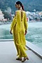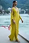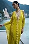 Featuring a yellow kaftan in net and pure crepe base. Style it with statement jewellery, heels, and a sling bag for a festive look.