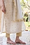 Featuring a beige kurta in handwoven silk khadi base with floral and heart hand embroidery. It is paired with striped pants and a short slip. Accentuate it with statement jewellery and block heels for a festive or pre-wedding ceremony.