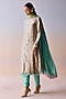 Beige Organza Mulberry Silk Hand Embroidered Kurta Set