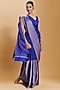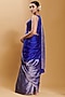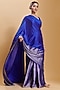 Featuring a blue saree in handwoven mulberry silk satin base with zari thread weave detail. Accentuate it with a blouse, polki jewellery and block heels for a wedding or sangeet ceremony.