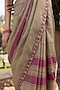 Featuring a brown saree in handwoven mulberry silk base. Accentuate it with a blouse, dangler earrings and heels for a festive occsion or pooja ceremony.