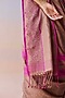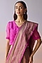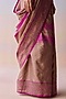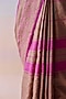 Featuring a brown and pink saree in handwoven organza mulberry silk base with stripes and jamdani organza border detail. Accentuate it with a blouse, polki jewellery and block heels for a wedding or festive ceremony.