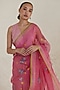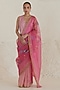 Featuring a carnation pink saree in handwoven organza mulberry silk base with jamdani floral motifs. Accentuate it with a blouse, polki jewellery and block heels for a wedding or engagement ceremony.
