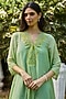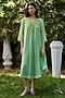 Featuring a green dress in chanderi base with a v-neck and pinstripe print, beadwork and applique work. It is paired with a cotton silk slip. Style it with dangler earrings and heels for a summer outing or casual wear.