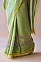 Featuring a green saree in handwoven organza mulberry silk base with pure organza border detail, bead and sequins hand embellishment, including floral print. Accentuate it with a blouse, polki jewellery and block heels for a wedding or mehendi ceremony.