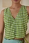 Featuring a green blouse in handwoven fine silk khadi base with gingham weave detail. Accentuate it with a saree, statement jewellery and block heels for a festive or pre-wedding ceremony.