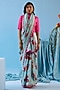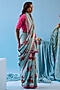 Featuring an ice blue saree in handwoven organza mulberry silk base with floral motif print. Accentuate it with a blouse, polki jewellery and block heels for a wedding or engagement ceremony.
