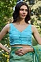 Featuring an ivory-blue padded blouse in handwoven mulberry silk base with a V-neckline, checks print and front-hook opening. Style it with a saree and dangler earrings for a festive occasion, cultural event or pooja ceremony.
