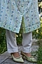 Featuring an ivory long kurta in chanderi base with an attached strap slip, cuff sleeves, mandarin collar and stripe print. It is paired with printed handwoven cotton pants having side pockets and elasticated waistband. Style it with stud earrings, flats, and a tote bag for an easy, relaxed look. Perfect for summer outings and casual daywear.