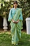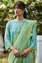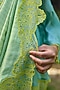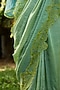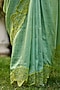 Featuring a lime green striped saree in handwoven mulberry silk base with applique and bead work, including scallop detail. Accentuate it with a blouse, dangler earrings and heels for festive soirees, pooja ceremony or daytime functions.