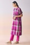 Featuring a multi-colored checkered kurta in handwoven kota silk base. It is paired with bright pink pants and a silk modal slip. Accentuate it with statement jewellery and block heels for a festive ceremony.