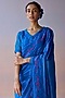Featuring a persian blue saree in handwoven organza mulberry silk base with scalloped border detail and embroidery. Accentuate it with a blouse, polki jewellery and block heels for a wedding or sangeet ceremony.
