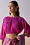 Featuring a pink blouse in handspun malda silk base with ruching detail, raglan sleeves and an elasticated waist. Accentuate it with a saree, statement jewellery and block heels for a festive or pre-wedding ceremony.