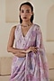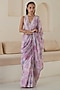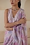 Featuring a pink saree in handwoven organza mulberry silk base with handmade watercolor floral print. Accentuate it with a blouse, polki jewellery and block heels for a wedding or engagement ceremony.