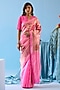 Featuring a pink saree in handwoven organza mulberry silk base with zari pallu and jamdani rose motifs detail. Accentuate it with a blouse, polki jewellery and block heels for a wedding or engagement ceremony.
