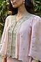 Pink Handwoven Organza Mulberry Silk Lace Embroidered Blouse