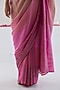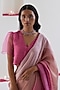 Featuring a pink saree in handwoven organza silk satin base with stripes. Accentuate it with a blouse, polki jewellery and block heels for a wedding or engagement ceremony.