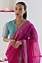 Featuring a pink saree in handwoven organza mulberry silk base with jamdani floral motifs. Accentuate it with a blouse, polki jewellery and block heels for a wedding or engagement ceremony.