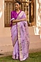 Featuring a powder pink saree in handwoven mulberry silk base with zari border detail and floral jamdani motifs. Accentuate it with a blouse, polki jewellery and block heels for a wedding or engagement ceremony.